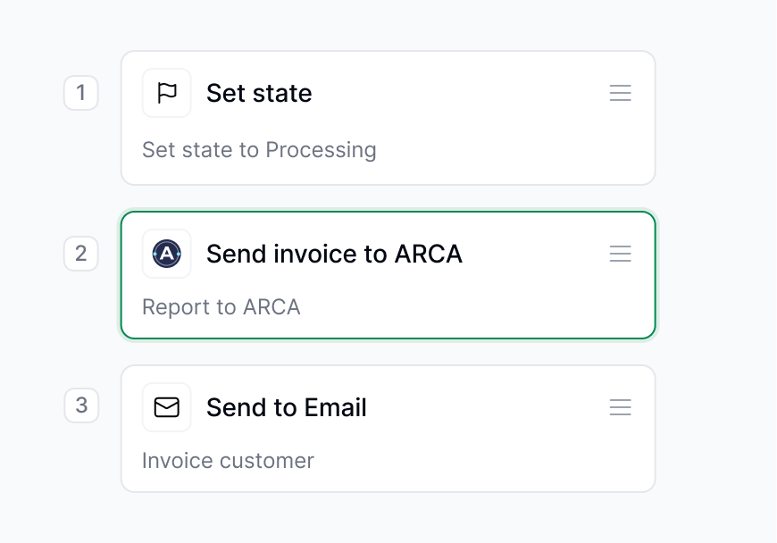 Crea workflows personalizados que transformen, reporten y envíen tus facturas allá donde lo necesites.